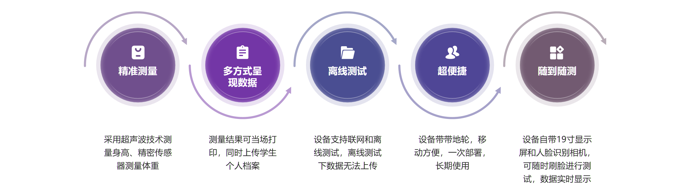 测量数据直接上传至学生档案中,超声波测高,精密传感器测重,使测量更准确。