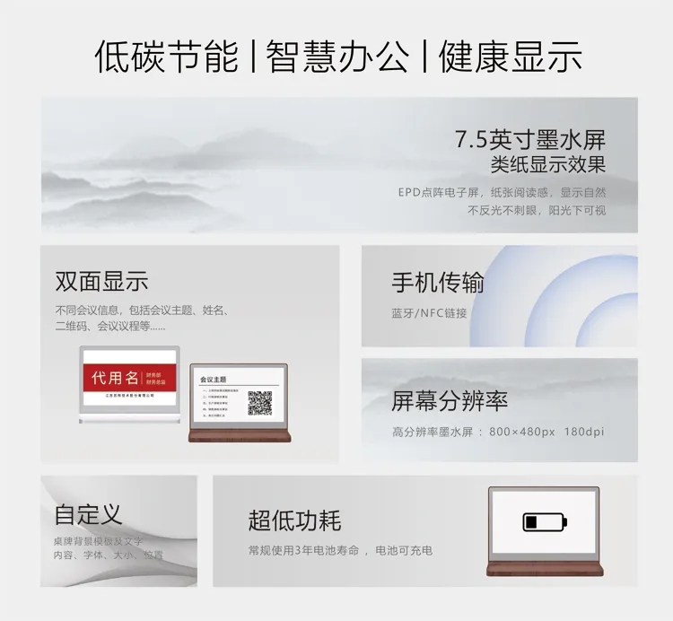 电子纸会议桌牌的出现,为智能化会议的提升带来了新的突破,引领会议管理走向无纸化、智能化。