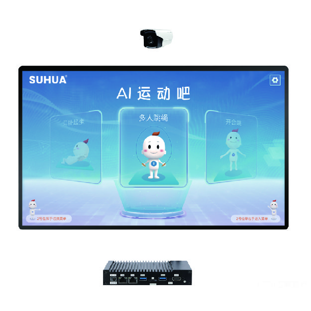 ✅ 看得见的AI教练:大屏实时反馈:运动成绩、违规动作(如跳绳踩线、仰卧起坐未触膝)即时提示。